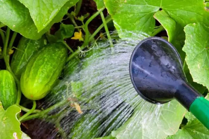 Water the cucumbers often, but with small portions of water. Plants should be watered regularly, but not too much. If you do this rarely, once every few days, the cucumbers will become bitter. This is why it is very important to water your cucumbers regularly, often, but with small amounts of water, so that the soil is constantly slightly moist, but not excessively wet, especially during periods of dry and hot weather.