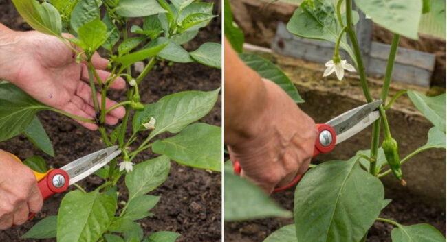 Removal of sick, weak, stepchildren growing inward is required in order to protect still healthy parts of the plant from infection. Pruning of peppers that have stopped growing is carried out in order to direct nutrients towards the healthiest and strongest shoots.