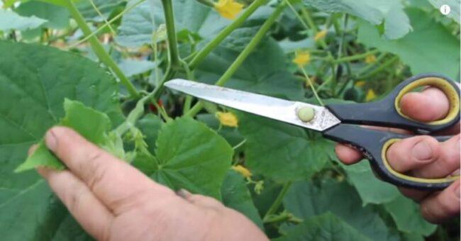 Removing unnecessary shoots from cucumbers