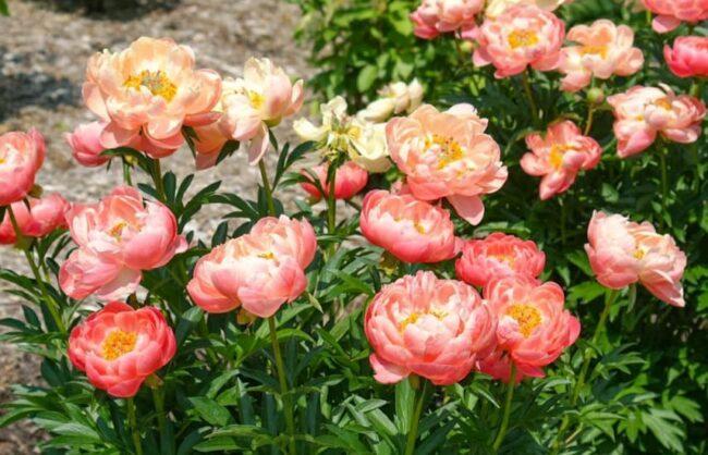 They should be planted in sunny or semi-shaded places, but should be protected from the wind. Peonies tolerate any type of soil well, but the best solution is fertile soil with a pH of about 5, rich in humus.