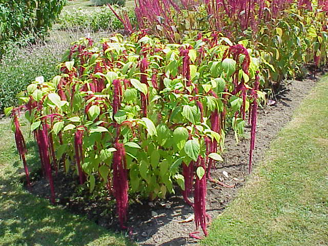 Amaranth has a red stem, curved at the top, from which grow large, lush green, veined leaves up to 15 cm long. They are edible and taste similar to spinach or chard.