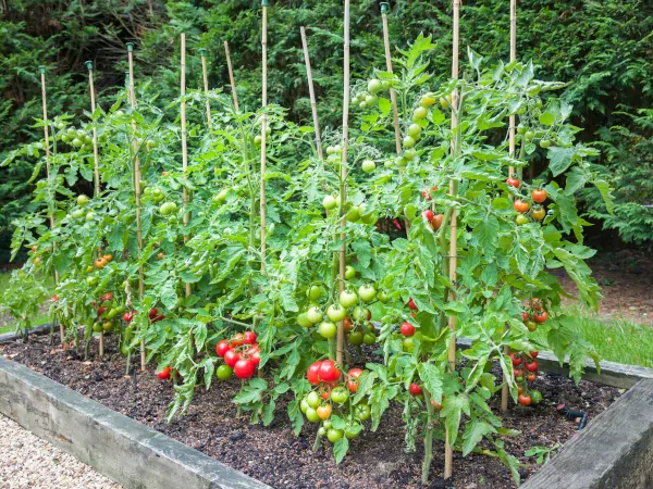 Помидорам следует отвести основное солнечное место, им требуется как минимум 8 часов света, чтобы плоды приобрели лучший вкус. В случае высокорослых растений понадобятся колья или решетки, чтобы растения не расползались по земле. Опору следует устанавливать сразу после посадки.
