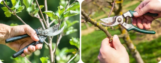 Обрезка. Колоновидная яблоня почти не нуждается в формировке. Обрезку яблонь следует проводить для того, чтобы сохранить хорошую вентиляцию кроны, не допуская ее загущения. Удаляют только поврежденные или сухие ветви. Обрезка также помогает лучше пропускать солнечный свет и циркуляцию воздуха в кроне.