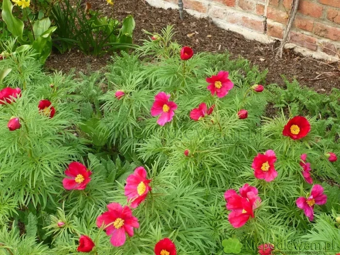 Пионы славятся своими замечательными, крупными и ароматными цветами. Из их кустов получаются красивые края тротуаров и невысокие живые изгороди. Пионы также хорошо смотрятся в смешанных сочетаниях с другими цветами, например, с ирисами и розами, а ниже с незабудками или фиалками.