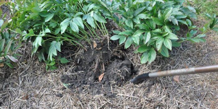 Кусты пионов можно подкармливать минеральными удобрениями в течение сезона. Чтобы они обильно цвели – осенью, примерно в октябре, после обрезки побегов, присыпают навозом. Это не только обеспечит растение питательными веществами, необходимыми весной, но и обеспечит некоторую защиту от мороза.