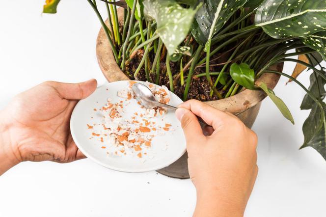 Щоб забезпечити рослини кальцієм, використовуйте яєчну шкаралупу. Сушать її, потім подрібнюють і змішують із ґрунтом у горщиках. Це добриво дуже повільно розкладається, тому діє повільно, але довго.